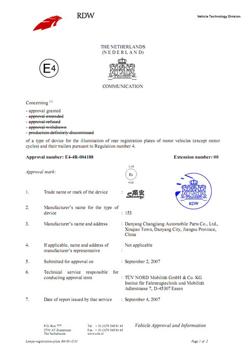 本公司現(xiàn)已通過(guò)E-MARK認(rèn)證